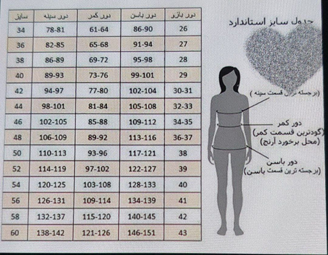 به جدول سایز دقت شود تعویض و مرجوعی نداریم